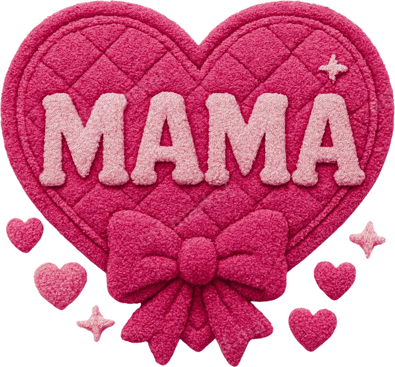 Mama Quilted Pink Heart DTF Transfer | Cozy Ready to Press Mom Design