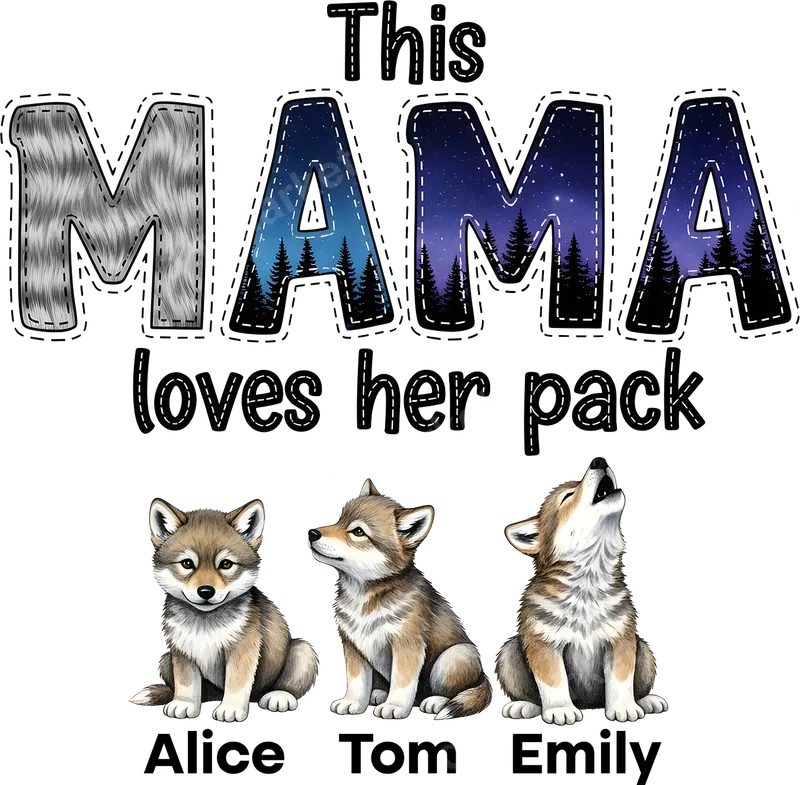 Mama Wolf Pack Custom DTF Transfer with Cub Names