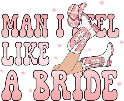 Man I Feel Like a Bride DTF Transfer - Pink Cowboy Boots Bachelorette