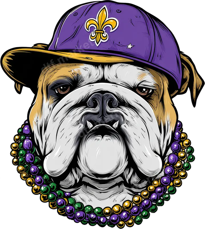 Mardi Gras Bulldog DTF Transfer - Fleur-de-Lis Dog Design