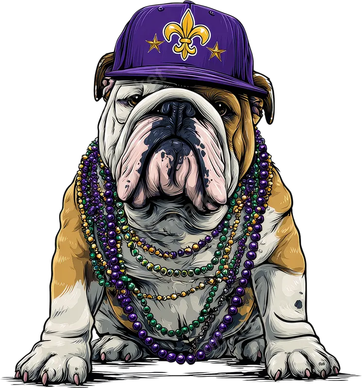 Mardi Gras Bulldog DTF Transfer | Fleur-de-lis Dog Heat Press Design