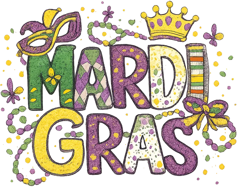 Mardi Gras Celebration DTF Transfer | Festive Mask, Crown, & Beads