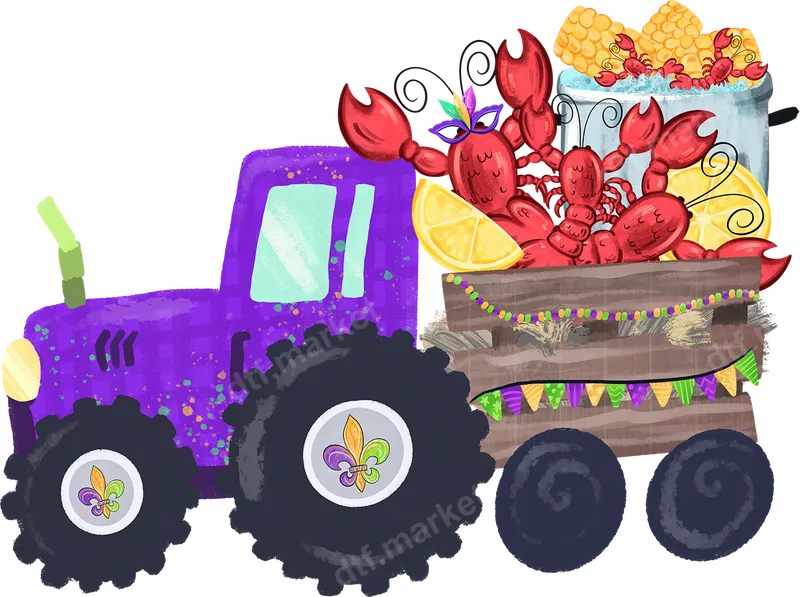 Mardi Gras Crawfish Boil Tractor DTF Transfer Design