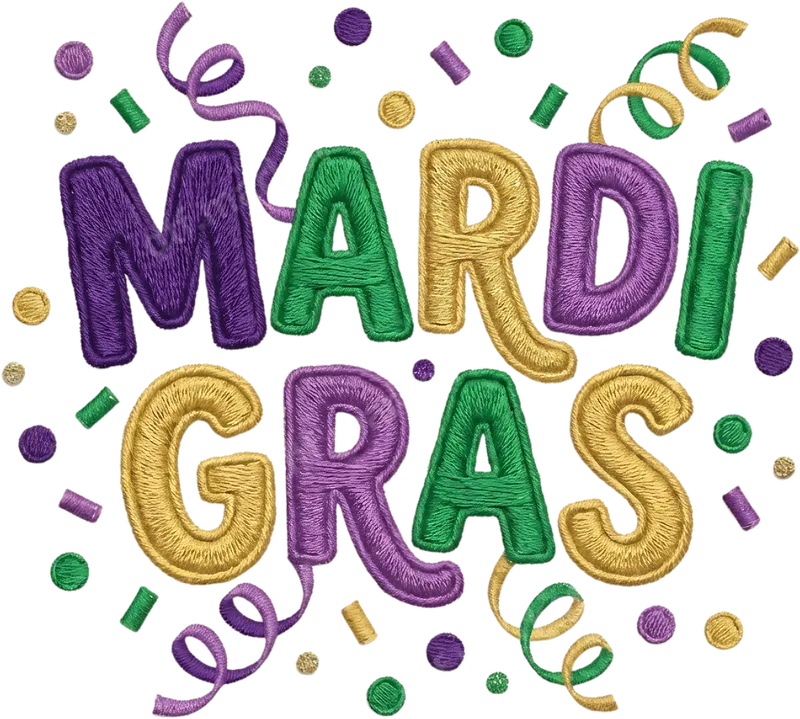 Mardi Gras Embroidered Look DTF Transfer | Ready to Press Design