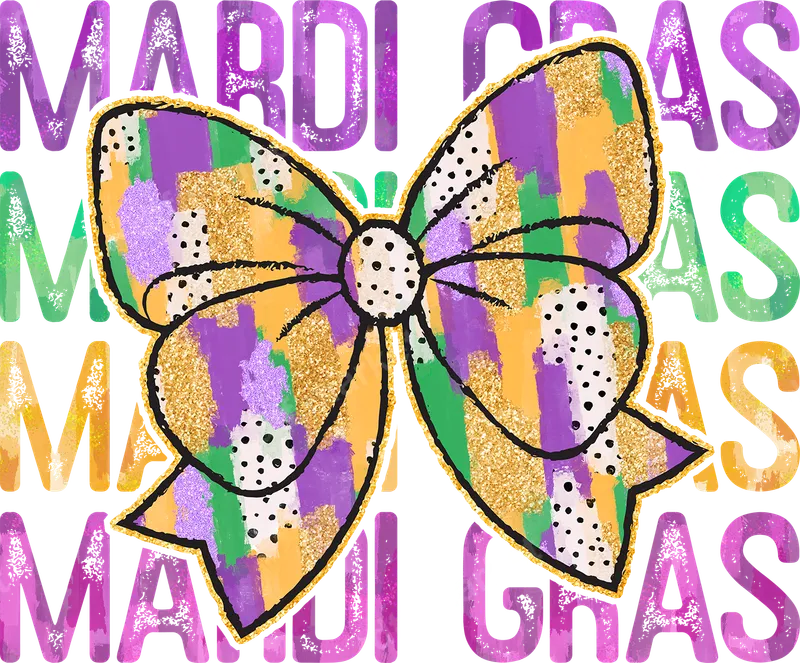 Mardi Gras Glitter Bow DTF Transfer | Ready to Press Design