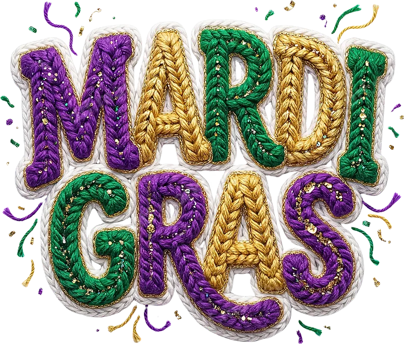Mardi Gras Knitted Glitter DTF Transfer | Ready to Press Design