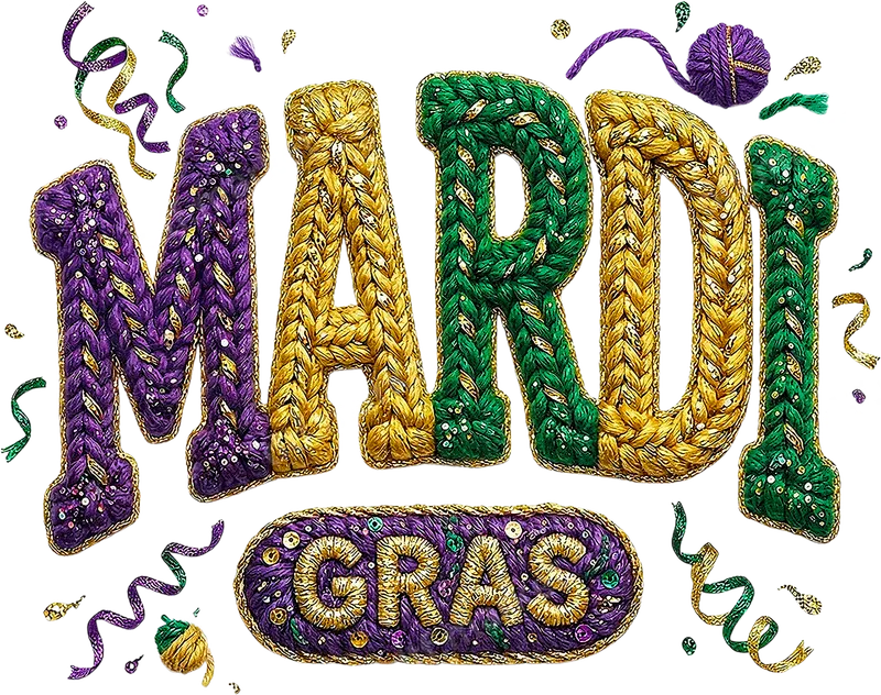 See allThe design showcases "MARDI GRAS" in a stunning, intricate knitted and embroidered texture, adorned with shimmering sequins and glitter in the iconic purple, gold, and green colors. This festive DTF transfer captures the joyous spirit of carnival with its rich details and celebratory flair, making it a perfect ready to press graphic for unique apparel. The playful scattered yarn and confetti elements enhance its vibrant, party-ready appeal. This eye-catching design is ideal for anyone looking to celebrate Mardi Gras in style. Perfect for party-goers, festival enthusiasts, and those who love vibrant, unique fashion. Use this direct to film transfer to create custom shirts for parade routes, themed parties, or even as a special gift for friends and family embracing the carnival season. It brings a touch of New Orleans magic to any garment. Applying this heat press transfer is incredibly simple and efficient. Our high-quality transfers work beautifully on a wide range of fabrics, including cotton, polyester, and various blends, ensuring versatility for your crafting projects. For best results, apply with a heat press at 300-325°F for 15 seconds with medium pressure. It can also be applied using a household iron for smaller projects. Best of all, there's no weeding required, saving you time and effort. Experience superior quality with our professional-grade DTF transfers. These heat press designs are known for their exceptionally vibrant colors, incredible detail, and a soft-to-touch finish that feels great on any garment. The durable film ensures your custom transfer is crack-resistant and long-lasting, with a strong adhesive that stands up to countless washes, maintaining its stunning appearance for seasons to come.