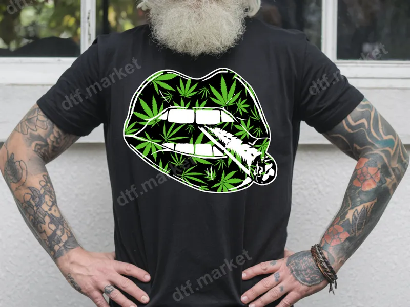 Marijuana Lips & Joint DTF Transfer | Green Leaf T-Shirt Design