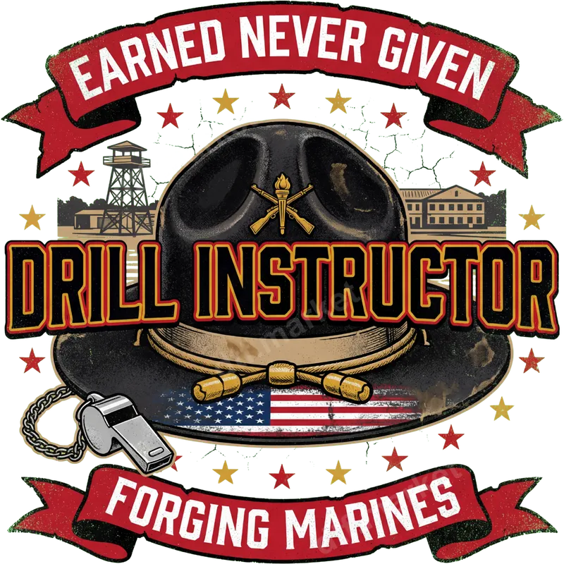 See allEmbrace the spirit of dedication with our "Earned Never Given | Drill Instructor" DTF transfer. This powerful design features a classic Marine Corps Drill Instructor hat, adorned with a whistle and crossed rifles, set against a distressed patriotic background. Emblazoned with "EARNED NEVER GIVEN" and "FORGING MARINES," this ready to press transfer exudes rugged pride, perfect for showcasing respect for those who shape the finest. This bold heat press design is tailor-made for current and former Marine Corps Drill Instructors, proud Marine veterans, military families, and anyone who admires the unwavering commitment of the USMC. It’s perfect for custom apparel for Veterans Day, Memorial Day, Marine Corps Birthday, military graduations, retirement gifts, or as an everyday statement of honor. Applying this high-quality iron on transfer is simple for a wide range of garments. It adheres beautifully to cotton, polyester, and blends. For best results, use a heat press at 300-325°F for 15 seconds with medium pressure. A household iron can also achieve great results. No tedious weeding is required, saving time and effort. Our professional-grade DTF transfer ensures a vibrant, long-lasting design that resists cracking and peeling, even after multiple washes. The colors pop, and the print remains soft to the touch, seamlessly integrating with your garment. This durable apparel transfer features strong adhesive, providing a reliable, professional finish every time.