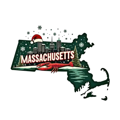 Massachusetts Christmas Lobster & Skyline DTF Transfer - Festive MA State Pride
