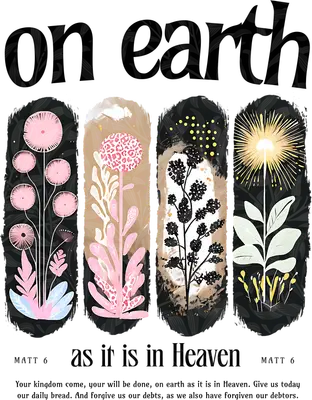 This stunning DTF transfer features an artistic interpretation of the beloved "on earth as it is in Heaven" phrase from Matthew 6. Four modern, abstract floral panels in soft pinks, natural beige, and striking black frame the powerful scripture, creating a design that is both spiritually uplifting and visually captivating. This ready to press design offers a contemporary way to showcase your faith with unique style and grace. Perfect for individuals seeking inspirational apparel, this faith-based iron on transfer is ideal for Christian women, youth groups, or anyone who cherishes the Lord's Prayer. It makes a thoughtful gift for confirmations, Easter, Mother's Day, or just as an everyday reminder of divine love. Small boutique owners and Etsy sellers specializing in Christian-themed garments will find this heat transfer design an excellent addition to their product line, offering customers a meaningful and stylish option. This versatile heat press transfer is incredibly easy to apply, working seamlessly on various materials including cotton, polyester, cotton-poly blends, and even nylon. Achieve professional results using a heat press set at 300-325°F for 15 seconds with medium pressure, or easily apply with a household iron. Forget the hassle of weeding; simply peel and press! It's perfect for creating custom t-shirts, cozy hoodies, inspiring tote bags, pillow covers, and even personalized scripture journals. For best results and lasting durability, wash garments inside out and tumble dry on low. Experience exceptional quality with this ready to press transfer, featuring vibrant, full-color printing and intricate details that truly bring the design to life. Our direct to film transfer technology ensures a crack-resistant finish that feels soft to the touch, without the heavy, stiff feel often associated with traditional vinyl transfers. Each DTF transfer is meticulously printed on premium film with a strong adhesive backing, guaranteeing a flawless application and professional-grade apparel every single time.