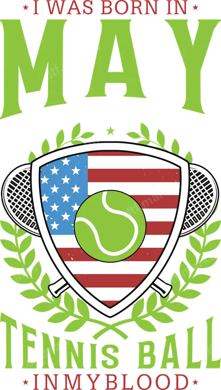 May Birthday Tennis Fan USA Flag DTF Transfer Design