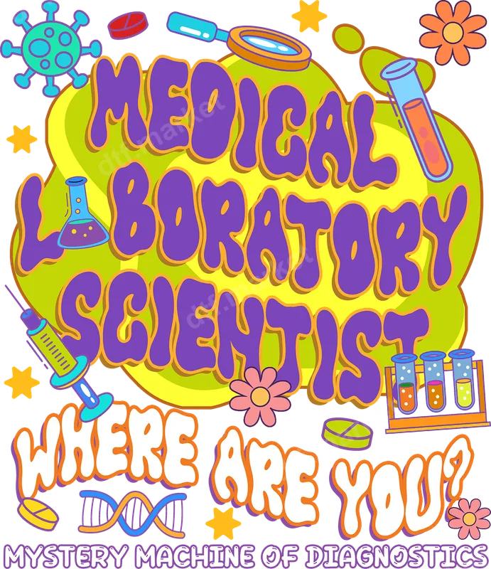 See allUnleash your inner diagnostic detective with this vibrant "Medical Laboratory Scientist Where Are You? Mystery Machine of Diagnostics" DTF transfer. Featuring a groovy, retro font and surrounded by whimsical scientific elements like a stylized virus, test tubes, a magnifying glass, and a DNA helix, this design brings a playful yet proud vibe to the demanding world of lab work. This high-quality DTF transfer is ready to press, making it easy to personalize your apparel. This unique heat press design is perfect for medical laboratory scientists, lab technicians, phlebotomists, pathology assistants, and science students. It makes an excellent gift for graduations, work anniversaries, appreciation days, or just to bring a smile to your favorite diagnostic professional's face. Wear it to work, conferences, or casual outings to showcase your passion for uncovering the "mystery machine" of human health. Applying this iron on transfer is a breeze! It works seamlessly on a wide range of fabrics, including cotton, polyester, and blends. Simply use a heat press at 300-325°F for 15 seconds with medium pressure. No complicated weeding or layering required, making it an efficient choice for both beginners and experienced crafters. You can even use a household iron for smaller projects or if a heat press isn't available. Our professional-grade t-shirt transfer ensures stunning results. The colors are incredibly vibrant, and the print is designed to be crack-resistant and soft to the touch, providing a comfortable and durable finish. With strong adhesive, this apparel transfer is built to last through countless washes, maintaining its crisp details and bright hues, just like a top-notch diagnostic report.