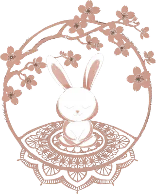 Meditating Zen Bunny DTF Transfer with Cherry Blossoms