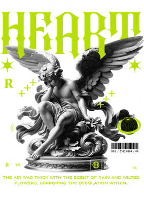 This striking DTF transfer features a classical greyscale statue of a melancholic winged angel, deep in contemplation. Juxtaposed against a dark background, the design is infused with vibrant neon green accents, gothic-style typography that spells "HEART", and modern graphic elements like stars and globe symbols. This powerful imagery, paired with a poignant quote about desolation, creates an edgy, thought-provoking vibe. It's a truly unique ready to press design that blends old-world artistry with contemporary streetwear aesthetics. This design is perfect for those who appreciate alternative fashion, gothic art, and expressive streetwear. It's an ideal iron on transfer for individuals looking to make a statement, whether at music festivals, urban events, or just for everyday edgy wear. Small t-shirt businesses and Etsy sellers specializing in unique apparel will find this heat transfer design a compelling addition to their inventory. It makes a thoughtful gift for friends or partners who connect with introspective, art-inspired themes and modern graphic styles. Applying this high-quality heat press transfer is effortless. It adheres beautifully to a wide range of fabrics, including cotton, polyester, cotton-poly blends, and even nylon, ensuring versatility for your projects. Achieve professional results using a heat press (recommended at 300-325°F for 15 seconds with medium pressure) or a standard household iron. Say goodbye to tedious weeding; simply peel and press! It's perfect for creating custom t-shirts, hoodies, sweatshirts, tote bags, and denim jackets. For best longevity, wash garments inside out and tumble dry low. Experience superior quality with this ready to press transfer. It boasts vibrant, full-color printing that captures every fine detail of the intricate statue and crisp neon graphics. The transfer is crack-resistant, soft to the touch, and avoids the heavy, bulky feel often associated with vinyl transfers. Each direct to film transfer is meticulously printed on premium DTF film, featuring a strong adhesive backing to ensure professional, durable results on all your apparel.