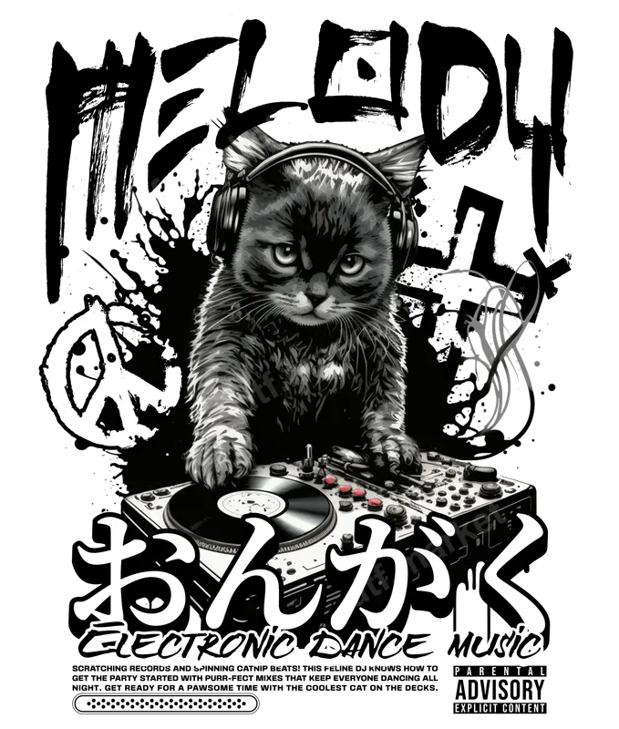 MELODY DJ Cat Electronic Dance Music DTF Transfer Design