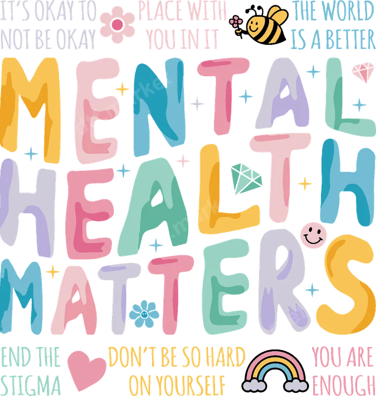 See allThis inspiring DTF transfer features the powerful message "Mental Health Matters" in a playful, multi-colored font, surrounded by uplifting phrases like "It's Okay To Not Be Okay," "The World Is A Better Place With You In It," and "You Are Enough." Adorned with a cheerful bee, a sweet rainbow, and sparkling accents, this ready to press design radiates positivity and support. It's a perfect way to wear your heart on your sleeve and encourage a culture of compassion and understanding. This vibrant heat transfer is ideal for mental health advocates, counselors, teachers, students, and anyone dedicated to spreading awareness and destigmatizing mental health discussions. It makes a thoughtful gift for friends, family, or colleagues, especially during Mental Health Awareness Month or as a daily reminder of self-care. Create custom apparel for support groups, awareness events, or simply to brighten someone's day with a meaningful statement. Our premium DTF transfers are designed for easy application on a wide variety of fabrics, including cotton, polyester, and their blends. For best results, use a heat press at 300-325°F for 15 seconds with medium pressure, then cold peel. A household iron can also be used with care. Unlike traditional vinyl transfers, these iron on designs require absolutely no weeding, saving you time and effort for a professional finish every time. Experience superior quality with our direct to film transfer, featuring vibrant, full-color printing that remains crack-resistant and soft to the touch even after multiple washes. Each t-shirt transfer is printed on professional-grade DTF film with a strong adhesive backing, ensuring excellent durability and a seamless integration into your garments. Elevate your custom clothing projects with a design that looks great and lasts long.