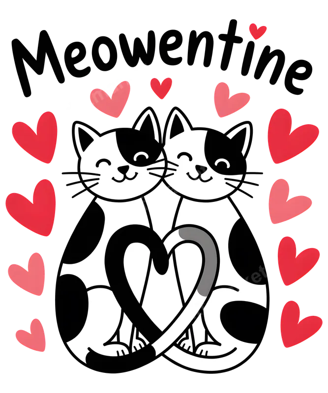 Meowentine Cat Couple DTF Transfer | Cute Valentine's Day Pet Love Design