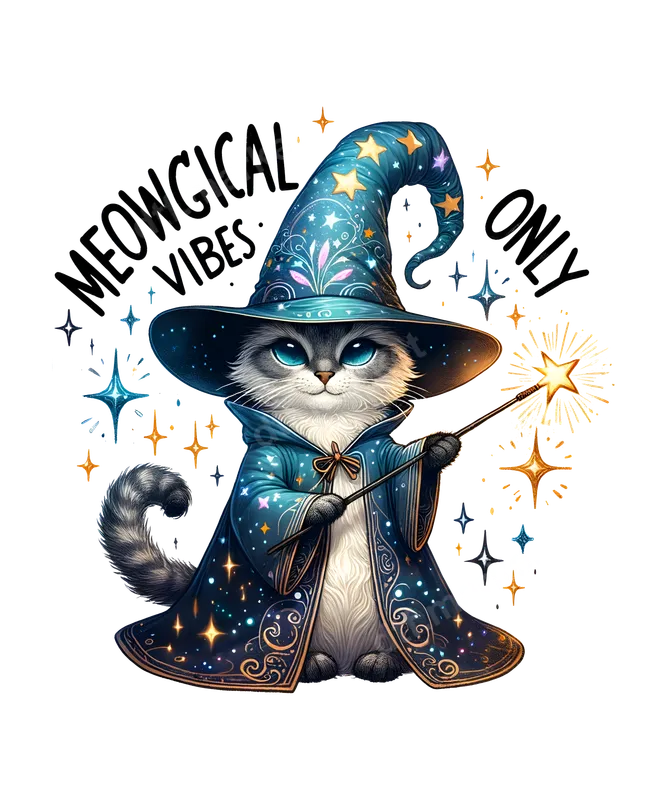 Meowgical Vibes Wizard Cat DTF Transfer | Cute Magical Feline Design