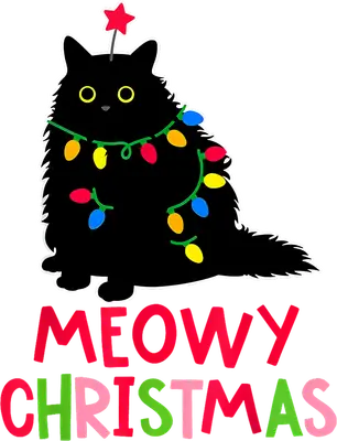 Meowy Christmas Black Cat DTF Transfer - Festive Cat Lights Design