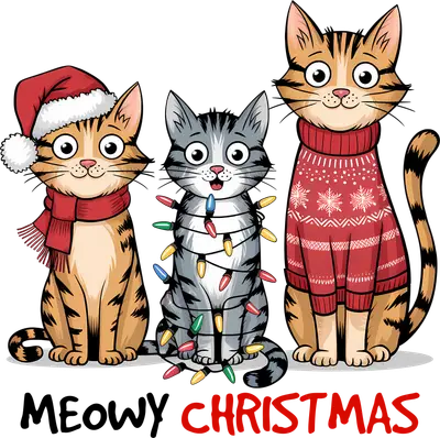 Meowy Christmas Cats DTF Transfer - Festive Holiday Pet Design