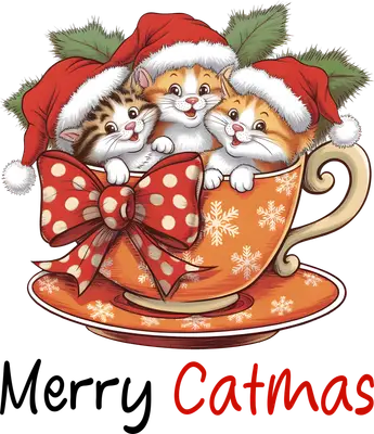 Merry Catmas Kittens DTF Transfer | Cute Christmas Teacup Cats Design