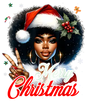 See allThis stunning DTF transfer captures the vibrant spirit of Christmas with a stylish African American woman wearing a fluffy Santa hat and making a peace sign. Her striking afro, glamorous gold hoop earrings, and long red nails embody 'Black Girl Magic,' complemented by snowflakes, holly, a candy cane, and a gingerbread man. The phrase 'Merry Christmas' is beautifully rendered in a celebratory script, making this design a perfect ready to press statement piece for the holiday season. This eye-catching design is perfect for anyone celebrating Christmas with style and cultural flair. It's an ideal iron on transfer for individuals embracing Black culture, fashion enthusiasts, and small business owners creating unique holiday apparel. Whether making a special gift or crafting matching shirts for a family gathering, this heat transfer design adds joy and empowerment to any garment. Celebrate sisterhood and the festive season with this beautiful graphic. Applying this heat press transfer is incredibly easy for both beginners and experienced crafters. It works flawlessly on fabrics like cotton, polyester, blends, and even nylon. Simply use a heat press at 300-325°F for 15 seconds with medium pressure, or apply with a household iron. No weeding required—just peel and press! Create custom t-shirts, hoodies, sweatshirts, tote bags, pillow covers, and denim jackets. For lasting durability, wash garments inside out and tumble dry on low. Experience premium quality with this ready to press transfer. It features vibrant, full-color printing that brings every detail to life, from the afro texture to the shimmering gold. Our transfers are crack-resistant, soft to the touch, and avoid that heavy, stiff vinyl feel. Each direct to film transfer is printed on high-grade DTF film with a robust adhesive backing, ensuring professional-grade results that stand up to countless washes.