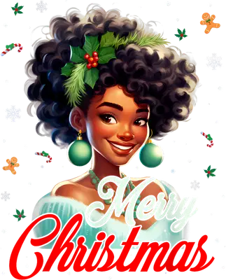 Merry Christmas Black Woman DTF Transfer with Holly & Snowflakes