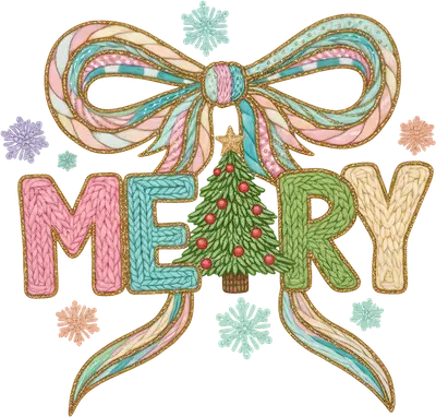 Merry Christmas Knit Pastel Bow DTF Transfer