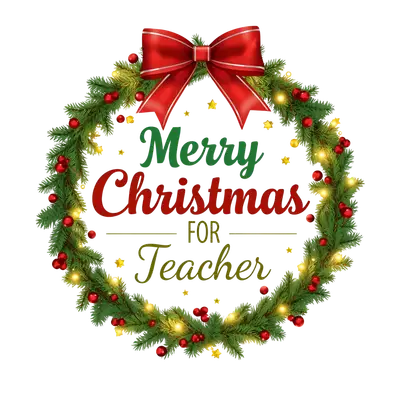 Merry Christmas Teacher Wreath DTF Transfer | Holiday Heat Press Design