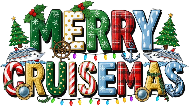 See allSet sail into the holidays with our cheerful 'Merry Cruisemas' DTF transfer! This vibrant design cleverly combines classic Christmas elements like holly, snowflakes, festive lights, and decorated trees with fun nautical details such as cruise ships, anchors, and a ship's wheel. Each letter is adorned with unique holiday patterns like plaid, polka dots, glitter, and candy cane stripes, creating a truly unique and ready to press graphic. This is the perfect DTF transfer for anyone celebrating the holidays at sea or dreaming of a festive getaway. This delightful design is ideal for cruise enthusiasts, families planning a holiday cruise vacation, or anyone who loves a blend of festive cheer and maritime adventure. It makes an excellent gift for fellow travelers, a fun piece of apparel for a cruise group, or a memorable souvenir from your Christmas voyage. Our ready to press transfer brings a touch of humor and holiday spirit to any garment, making it perfect for Christmas parties, family gatherings, or casual wear during the festive season. Our DTF transfers are incredibly versatile and can be applied easily to a wide range of fabrics, including cotton, polyester, and various blends. Achieve professional results with a heat press set at 300-325°F for 15 seconds with medium pressure, or use a household iron for smaller projects. There’s no complex weeding or layering involved, making this heat transfer a hassle-free choice for custom apparel. Experience superior quality with our professional-grade direct to film transfers. Each apparel transfer boasts vibrant, crisp colors and exceptional detail that remain brilliant wash after wash, resisting cracking and fading. The soft-touch feel ensures maximum comfort, making your custom shirts or accessories a joy to wear. Elevate your holiday wardrobe with this unique iron on transfer, designed for durability and outstanding visual appeal.