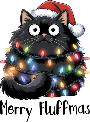 Merry Fluffmas Black Cat Christmas Lights DTF Transfer Funny Holiday
