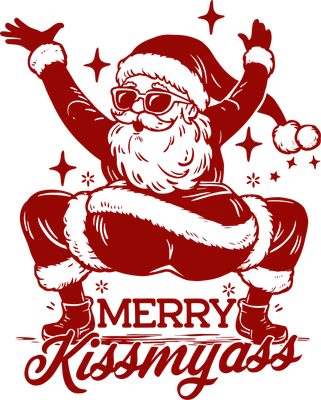 Merry Kissmyass Santa Squat DTF Transfer - Funny Christmas Heat Press Design