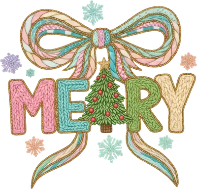 Merry Knitted Bow Pastel Christmas DTF Transfer