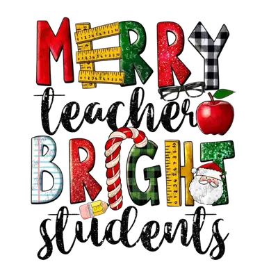 See allCelebrate the festive season and show appreciation for educators with our delightful 'Merry Teacher Bright Students' DTF transfer. This vibrant design combines classic Christmas elements like glittery red and green letters, buffalo plaid, a candy cane, and a jolly Santa Claus, seamlessly blended with school-themed accents such as a ruler, an apple, and a pencil. It's a cheerful and heartwarming graphic, perfect for brightening up any classroom or holiday event with this ready to press design.