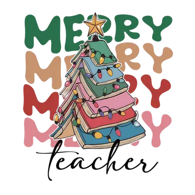 See allThis charming DTF transfer features a festive Christmas tree artfully constructed from a stack of colorful books, adorned with classic holiday lights and a shining star. Above, the phrase "MERRY" is playfully repeated in a retro stacked font, while "teacher" is elegantly scripted below. It's a whimsical, education-themed design that perfectly blends holiday cheer with appreciation for educators, making it a truly unique ready to press design. This delightful design is perfect for anyone looking to create a special gift for a beloved teacher, librarian, or school staff member during the holiday season. Small t-shirt businesses and crafters can easily produce custom apparel for school fundraisers, holiday events, or teacher appreciation gifts. It’s an ideal iron on transfer for personalizing gifts that celebrate both learning and the spirit of Christmas. Our high-quality heat press transfer is incredibly versatile, working beautifully on a wide range of materials including cotton, polyester, cotton-poly blends, and even nylon. Application is simple with a heat press (recommended 300-325°F for 15 seconds, medium pressure) or even a household iron. There’s no tedious weeding required – just peel and press! Create custom t-shirts, hoodies, sweatshirts, tote bags, pillow covers, baby onesies, aprons, and denim jackets. For lasting durability, wash garments inside out and tumble dry on low. Experience vibrant, full-color printing with exceptional fine detail. This ready to press transfer is crack-resistant, soft to the touch, and avoids the heavy, stiff feel of traditional vinyl. Each direct to film transfer is printed on premium DTF film, ensuring a strong adhesive backing for professional-quality results on every project.