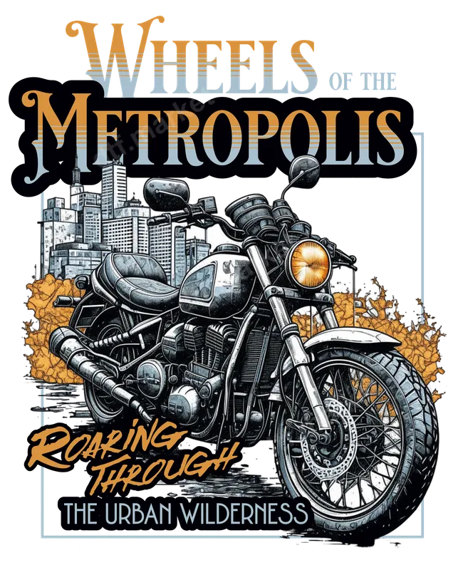 Metropolis Motorcycle DTF Transfer | Urban Roar Biker Ready to Press Design