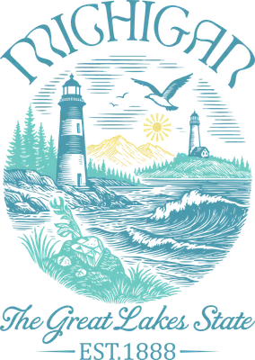 Michigan Great Lakes State Vintage Lighthouse DTF Transfer