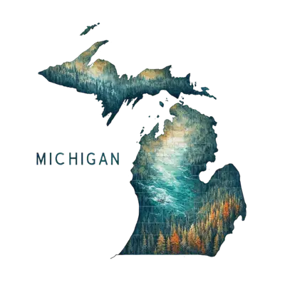 Michigan Nature Outline DTF Transfer: Forests, Lakes, & State Pride