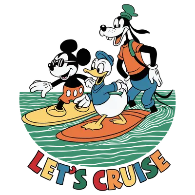 Mickey, Donald, Goofy Surfing "Let's Cruise" Retro DTF Transfer