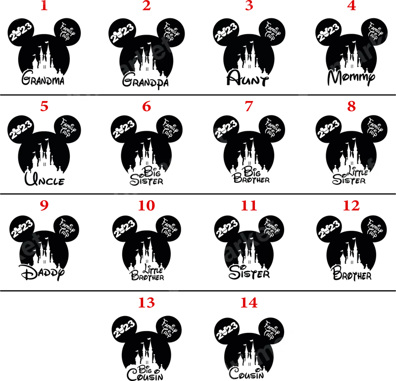 See allEmbark on your magical journey with our iconic Mickey Ears 2023 Family Trip DTF transfer! This enchanting design features the classic Mickey ear silhouette, complete with a majestic castle outline, and proudly displays "2023 Family Trip" alongside a specific family role like "Grandma," "Mommy," or "Big Brother." Perfect for creating personalized matching outfits, this high-quality direct to film transfer lets every family member showcase their part in an unforgettable adventure. This beloved design is ideal for families planning a special trip to a magical theme park, celebrating a reunion, or simply cherishing family bonds. Who would search for this? Parents organizing group attire, grandparents looking for a thoughtful gift, or siblings wanting coordinating shirts for their upcoming adventure. Our easy-to-apply iron on transfer makes personalizing garments simple and fun for everyone. Application is a breeze with our ready to press designs. Simply apply with a heat press at 300-325°F for 15 seconds, and you're done – no weeding, no complex layers! These versatile designs adhere perfectly to a wide range of fabrics including cotton, polyester, and cotton/poly blends. Transform everyday items like t-shirts, hoodies, sweatshirts, tote bags, and even baby onesies into cherished keepsakes of your family's memorable 2023 trip. Crafted with premium DTF film and vibrant inks, our heat press transfers offer exceptional durability and a super soft touch. Enjoy a crack-resistant finish that holds up wash after wash, maintaining its vivid colors and crisp details. Each apparel transfer is designed for long-lasting wear, ensuring your custom garments remain a treasured memento of your family's magical 2023 journey for years to come.