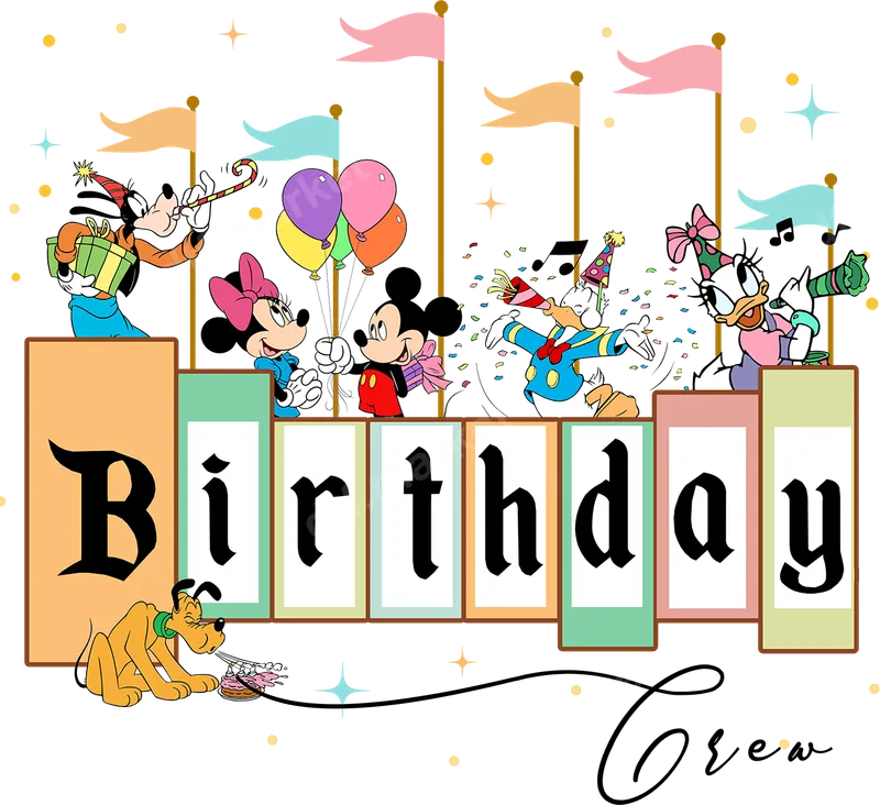 Mickey & Friends Birthday Crew DTF Transfer | Ready to Press Design