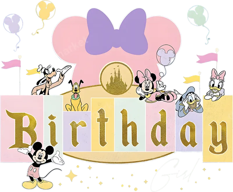 Mickey & Friends Birthday Girl DTF Transfer - Pastel Celebration