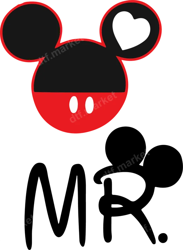 See allThis charming DTF transfer features a classic red and black mouse ear silhouette with a modern twist – a subtle heart cutout in one ear and the stylish 'MR.' text below. It's a perfect ready to press design for couples looking to express their love in a fun, iconic way, combining beloved imagery with a romantic touch. This direct to film transfer is vibrant and makes a statement. Ideal for romantic partners, fiancés, and newlyweds, this heat transfer is perfect for matching couple outfits. Create memorable shirts for anniversaries, honeymoons, Valentine's Day, or special trips to theme parks. It also makes a thoughtful and unique gift for engagements, bridal showers, or any occasion celebrating unity and affection, letting you personalize apparel with ease. Applying this high-quality iron on transfer is simple. Designed for various fabric types, it works seamlessly on cotton, polyester, and their blends. Use a heat press at 300-325°F for 15 seconds with medium pressure. For home users, a household iron can also be used with careful application. No tedious weeding is required, saving you time and effort compared to traditional vinyl. Experience exceptional results with our durable and vibrant apparel transfer. This professional-grade DTF film ensures a bright, crack-resistant finish that feels soft to the touch and moves with the fabric. The strong adhesive guarantees your shirt design will last wash after wash, maintaining its pristine look and feel for years to come.