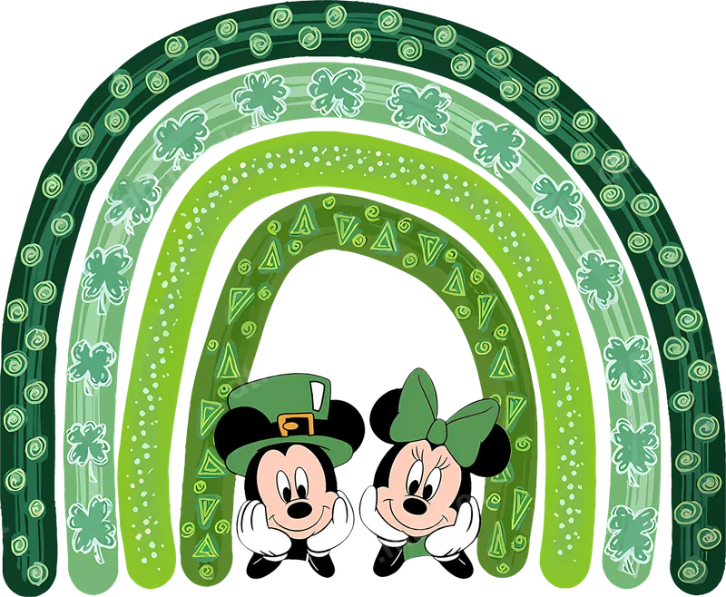 Mickey Minnie St. Patrick's Day Green Rainbow DTF Transfer