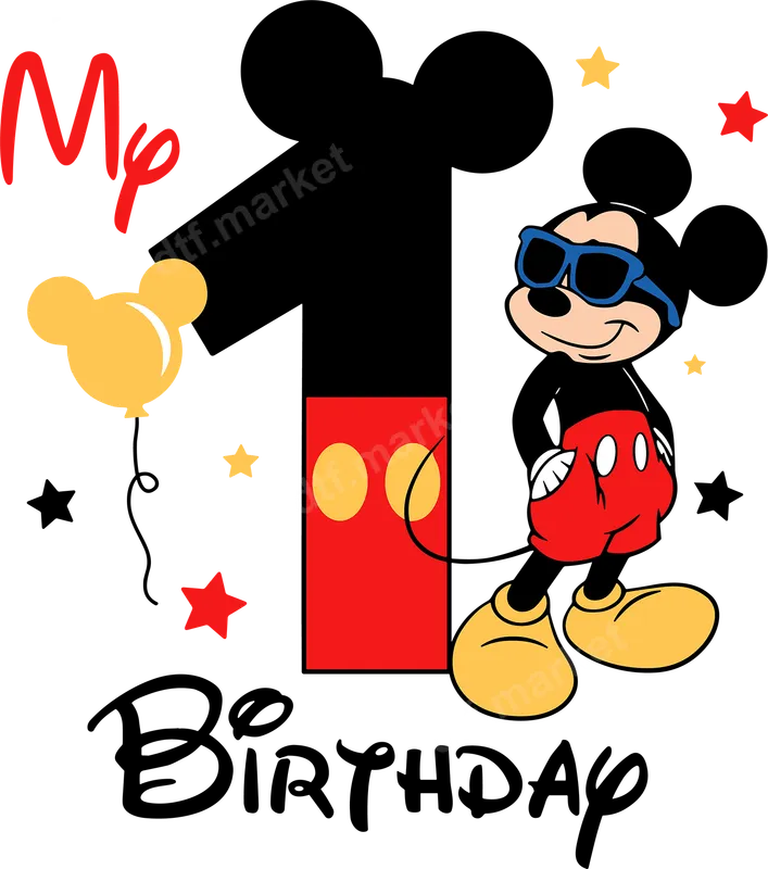 Mickey Mouse 1st Birthday DTF Transfer | Cool Sunglasses Design