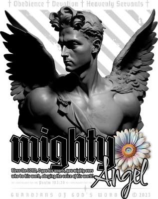 Mighty Angel DTF Transfer | Psalm 103:20 Bible Verse Design