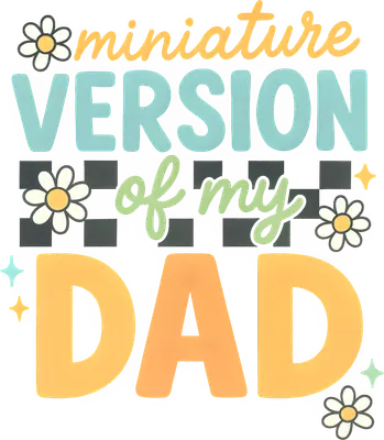 See allShowcase little one's dad pride with this charming 'Miniature Version of My Dad' DTF transfer. This playful design features a delightful blend of groovy retro typography in warm yellows, light blues, and soft greens, complemented by whimsical daisies, a classic checkerboard pattern, and sparkling stars. It’s a vibrant and cheerful statement piece that’s completely ready to press onto your favorite garments and accessories. This nostalgic heat transfer design is perfect for proud children, toddlers, and babies who are their dad's mini-me. It makes an excellent gift for new dads, expectant fathers, or anyone celebrating their special bond with their kids. Ideal for Etsy sellers creating custom apparel, small boutique owners expanding their novelty collection, or crafters looking for unique iron on transfers for baby showers, birthdays, or Father’s Day. Applying this heat press transfer is a breeze! It adheres beautifully to a wide range of materials including cotton, polyester, cotton-poly blends, and even nylon. Use a heat press at 300-325°F for 15 seconds with medium pressure, or apply with a household iron. No tedious weeding is required – just peel and press! Create custom t-shirts, hoodies, sweatshirts, baby onesies, tote bags, aprons, or denim jackets. For lasting durability, wash inside out and tumble dry low. Experience premium quality with every ready to press transfer. Our direct to film transfers boast vibrant, full-color printing with exceptional fine detail, ensuring your design pops. They are crack-resistant, soft to the touch, and avoid the heavy, stiff feel of traditional vinyl. Each transfer is printed on high-grade DTF film with a strong adhesive backing, guaranteeing professional and long-lasting results every single time.