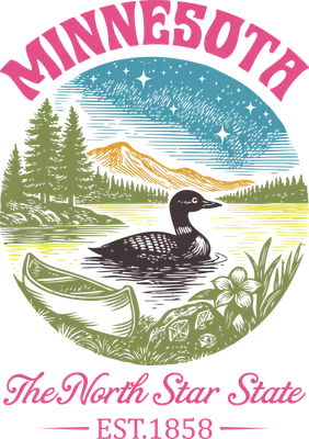 Minnesota Loon Lake Scenic DTF Transfer - North Star State EST.1858