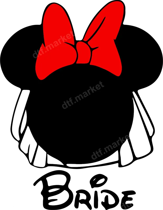 See allThis enchanting Minnie Bride DTF transfer features the iconic Minnie Mouse silhouette adorned with a classic red bow and a delicate wedding veil, with the word "Bride" elegantly scripted below. It captures the joy and magic of a Disney-inspired wedding, making it the perfect ready to press design for any bride-to-be. This charming design brings a touch of whimsical romance to your special celebrations, ensuring your apparel stands out. Designed for brides, bridesmaids, and bachelorette partygoers, this heat press transfer is ideal for pre-wedding events, bridal showers, engagement parties, or even as a unique gift for a Disney-loving bride. Imagine custom t-shirts for the whole bridal squad or a special "Bride" shirt for honeymoon adventures. It's also perfect for theme park trips, allowing you to celebrate your upcoming nuptials in true Disney style. Our premium DTF transfers are incredibly versatile and can be applied to a wide range of fabrics, including cotton, polyester, and various blends. Application is a breeze; simply use a heat press at 300-325°F for 15 seconds with medium pressure, or even a household iron for smaller batches. There's no complex weeding or layering involved, making your customization process quick and hassle-free. Experience superior quality with our direct to film transfers, which boast vibrant colors, exceptional durability, and a soft, smooth feel once applied. Each apparel transfer is crafted from professional-grade DTF film with a strong adhesive, ensuring your design remains crack-resistant, peel-free, and long-lasting through countless washes. Elevate your garments with a professional finish that truly stands the test of time.
